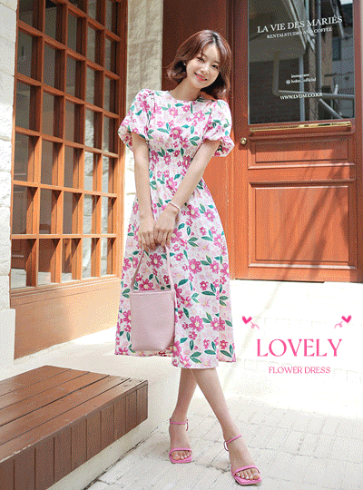Lovely Flower Sleeves Puff Smock Banding Dress