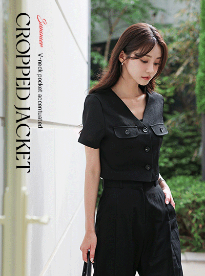 Summer V-neck Pocket Point Crop Jacket