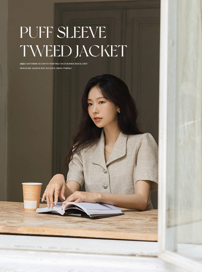 블렌딩 Polo Puff Sleeves Tweed Blouse Jacket