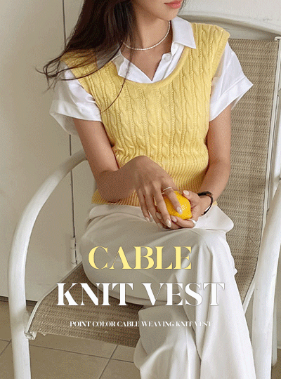 Point Color Cable Woven Knit Vest