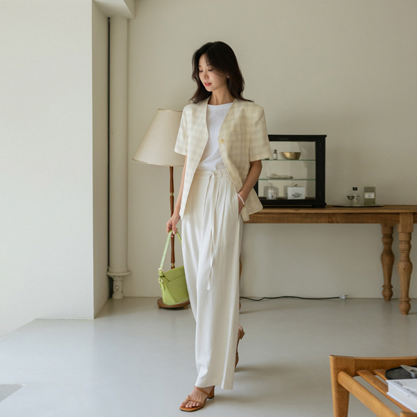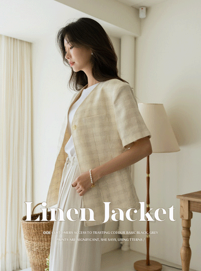 Creamy Check Patterns One Button Linen Jacket