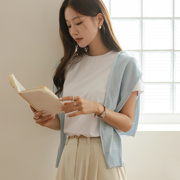 Lovely Shoulder Ribbon Point Color Tight Knit