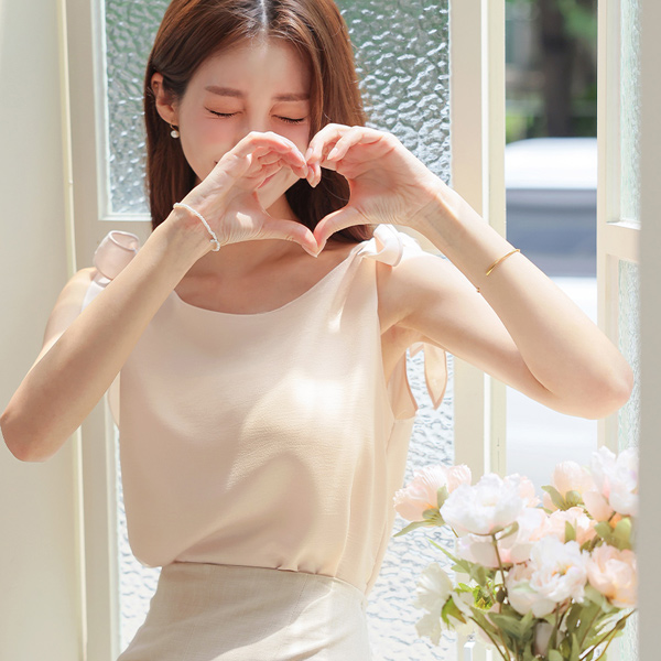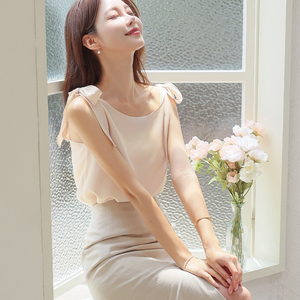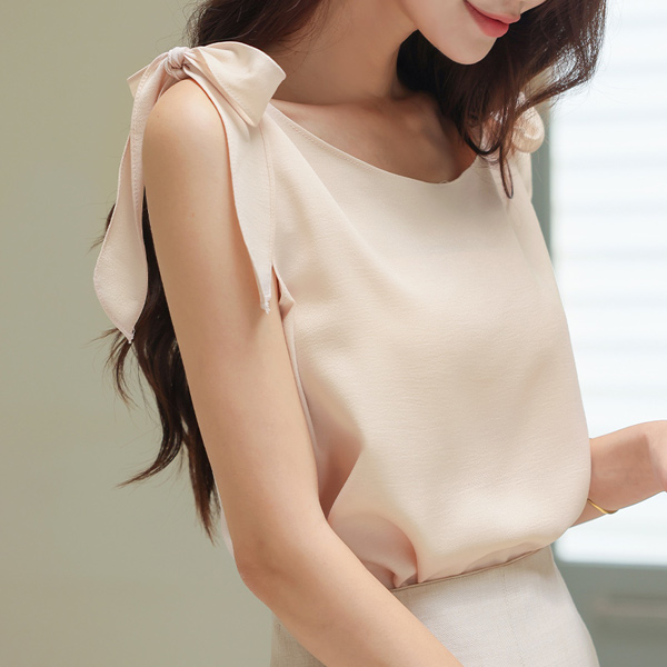 Romantic Ribbon Knot Sleeveless shirts Blouse