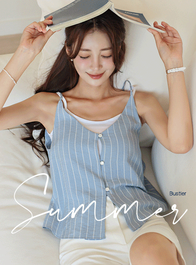 Summer Stripe Bustier Strap Tank-Top Blouse