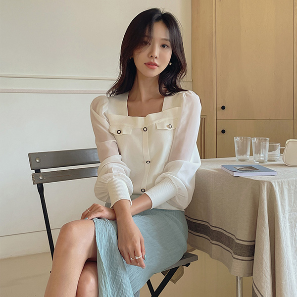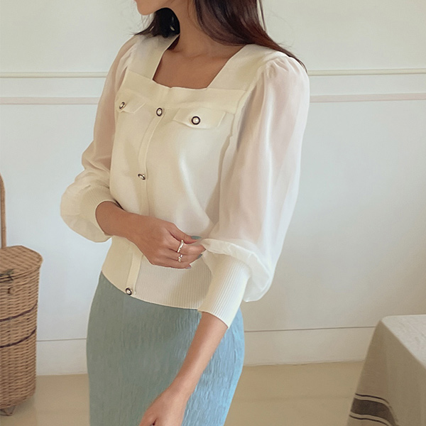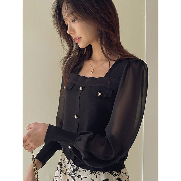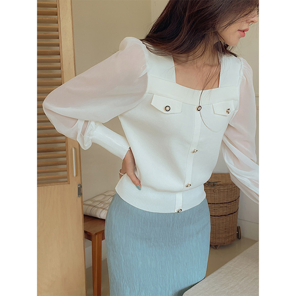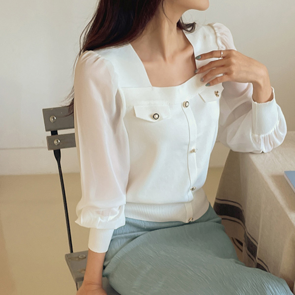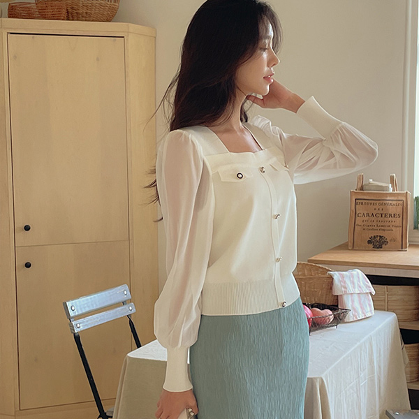Romantic Chiffon Sleeves Square Neck Knit