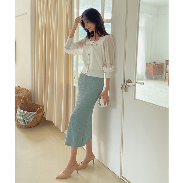 Romantic Chiffon Sleeves Square Neck Knit