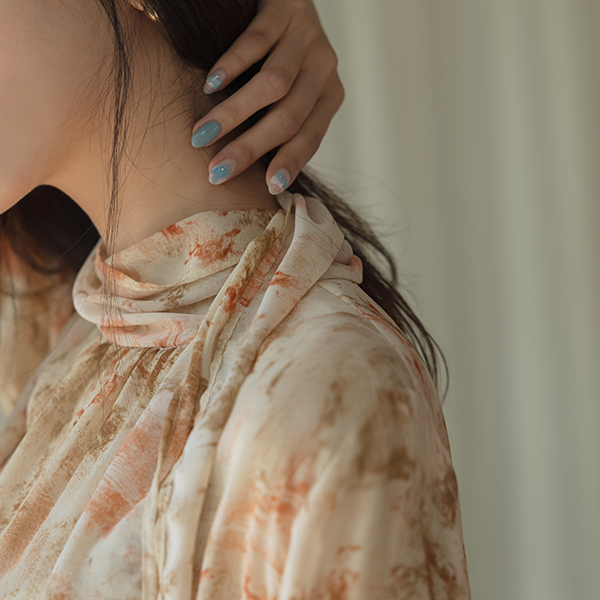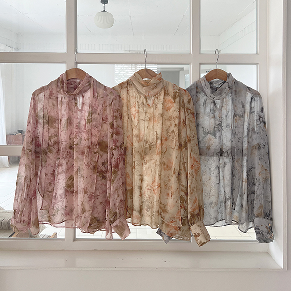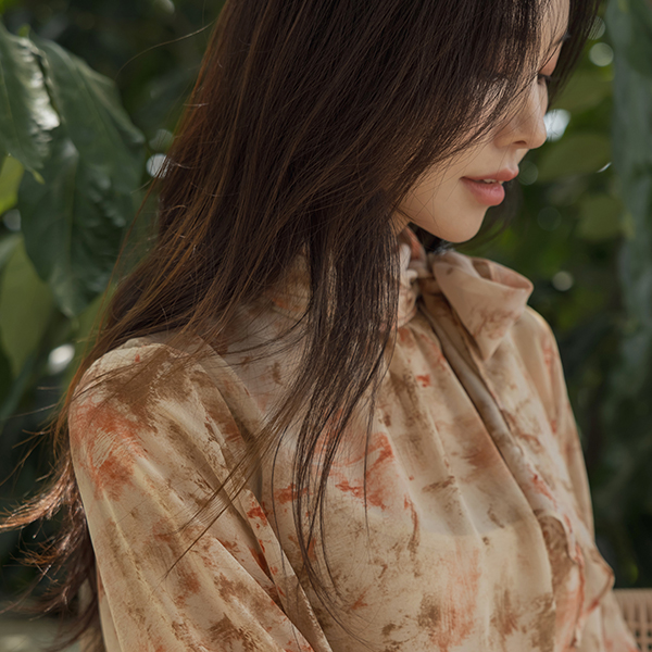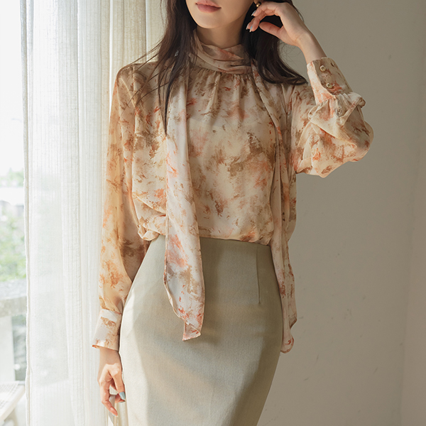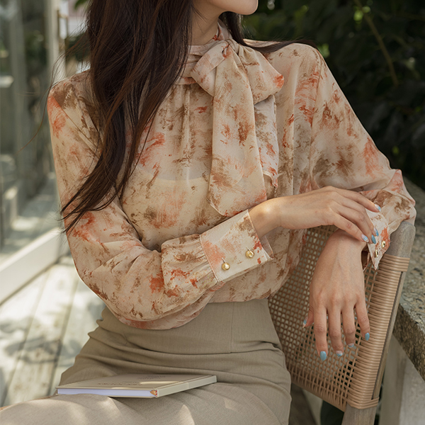 로지아 Mood Printing Chiffon Tie Blouse
