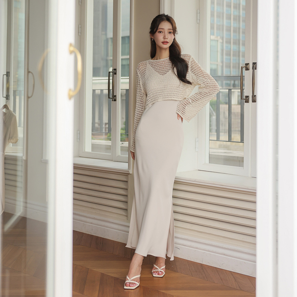 Elegance Soft Pretty fit Side Center Front Vent Slip Long Dress