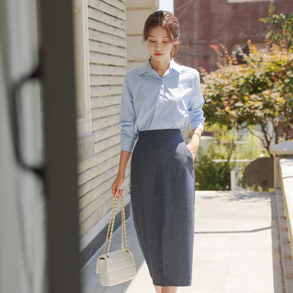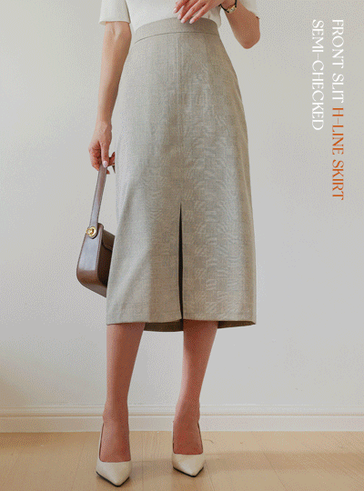 Semi- Check Front Slit H-line Skirt