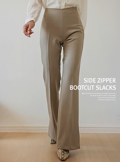 Slim Line Side Zipper Side Slit Boot-Cut Slacks