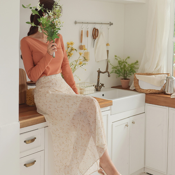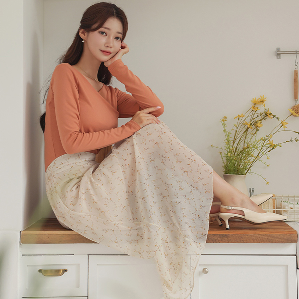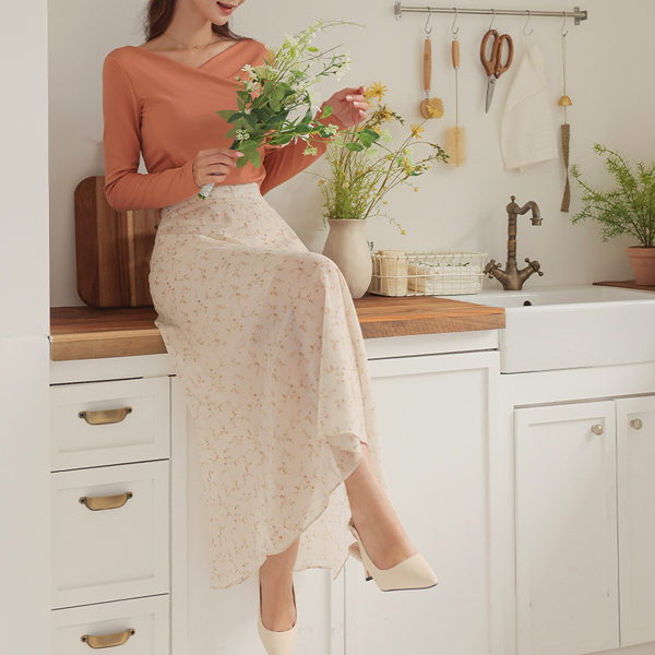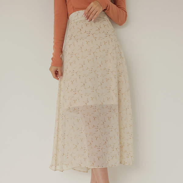 Floral Wrinkle The Back Banding A-line Long Skirt