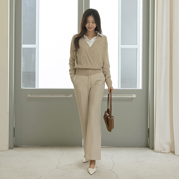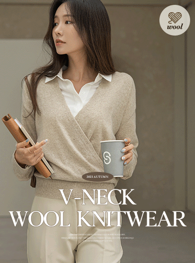 V-neck Wrap Style Wool Knit