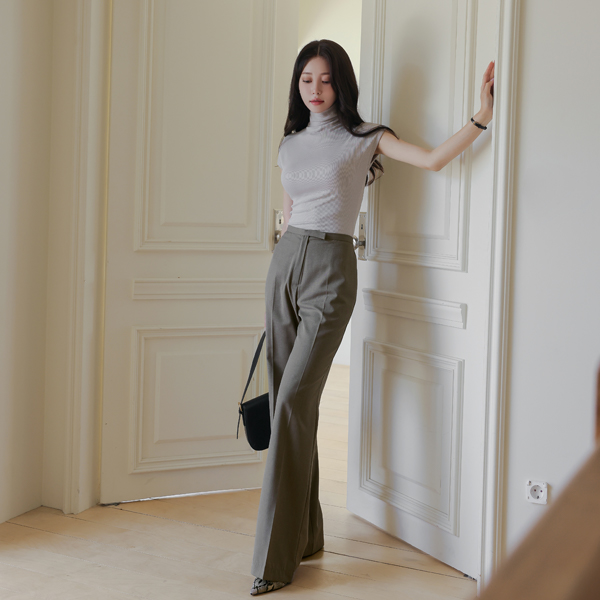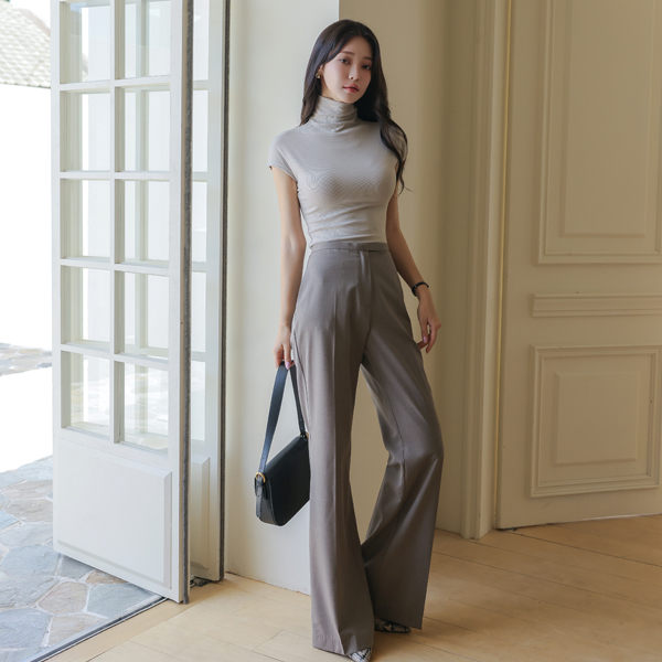 High-Neck Cap-Sleeves Corduroy Slim Span T-shirt