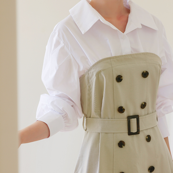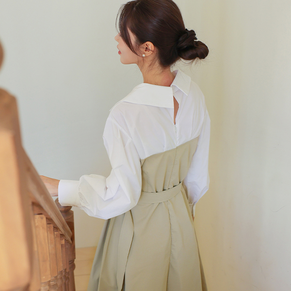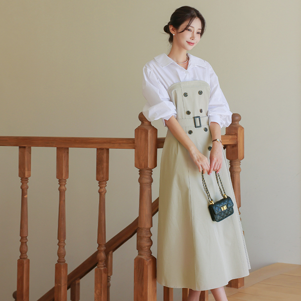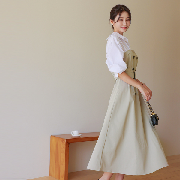 Shirt layered Trench Flared Long Dress