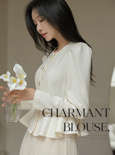 Charmant Peplum Line Pearl Button Blouse