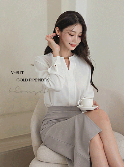 V Center Front Vent Gold Blouse