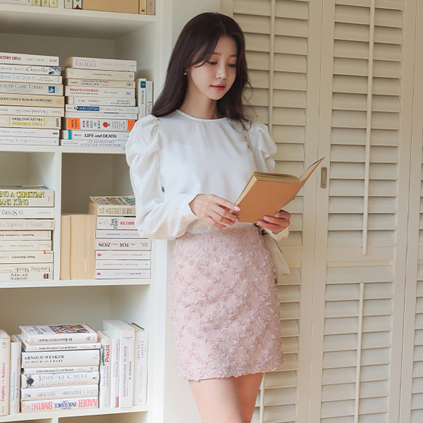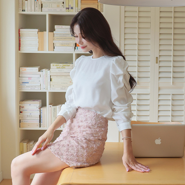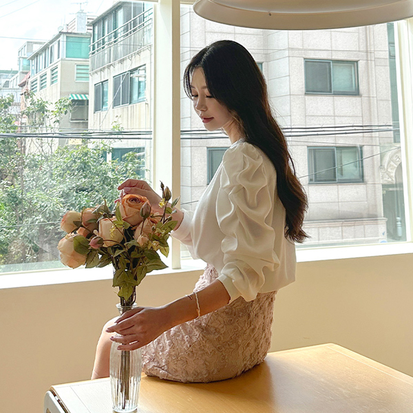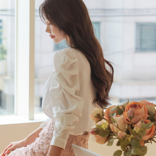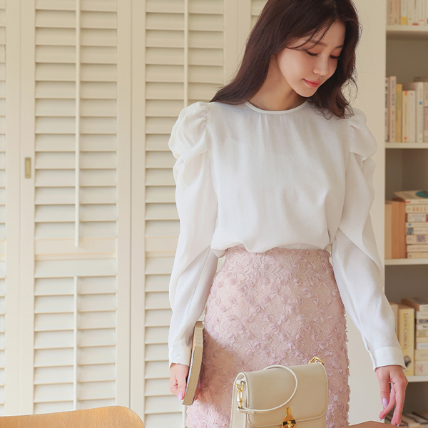 Lovely Volume Sleeves Raund neck Puff Blouse
