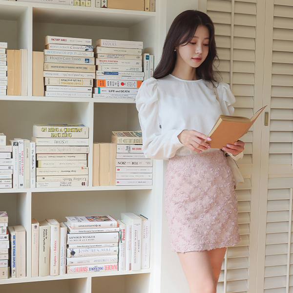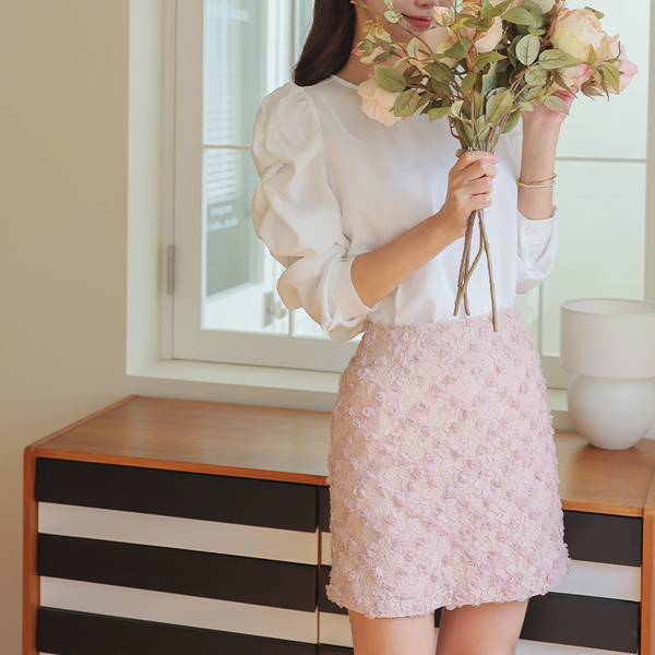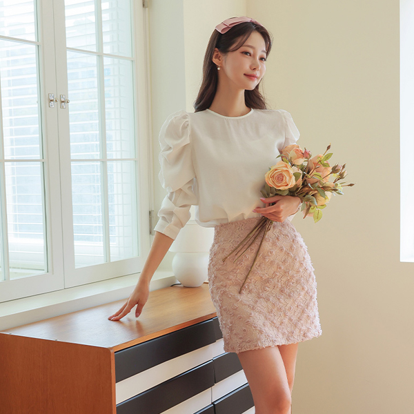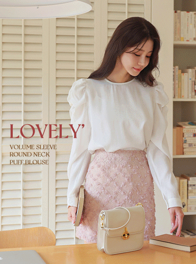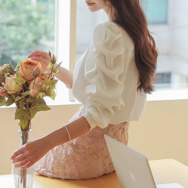 Lovely Volume Sleeves Raund neck Puff Blouse
