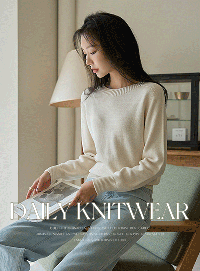 slender Neck-Line Point Color Daily Knit
