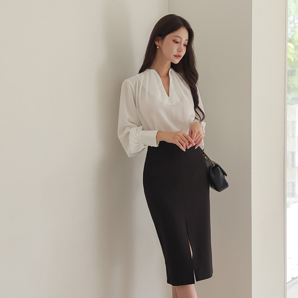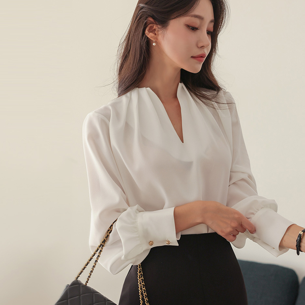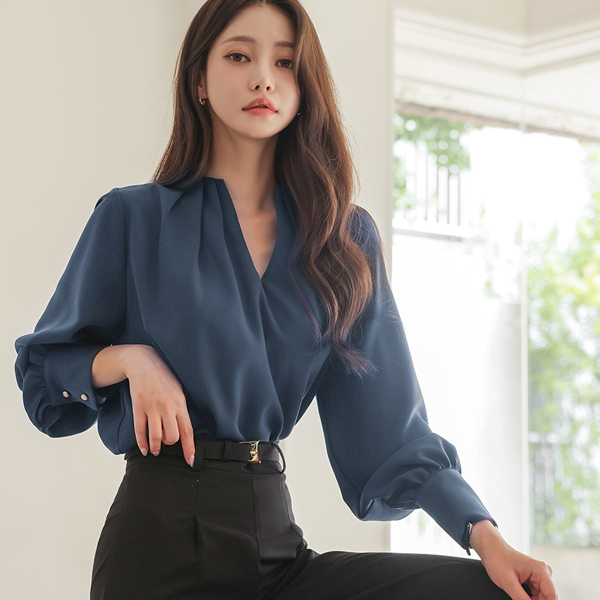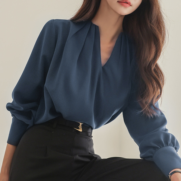 Deep VNeck Pintuck Point Blouse
