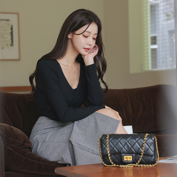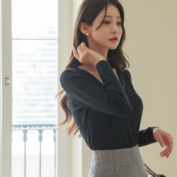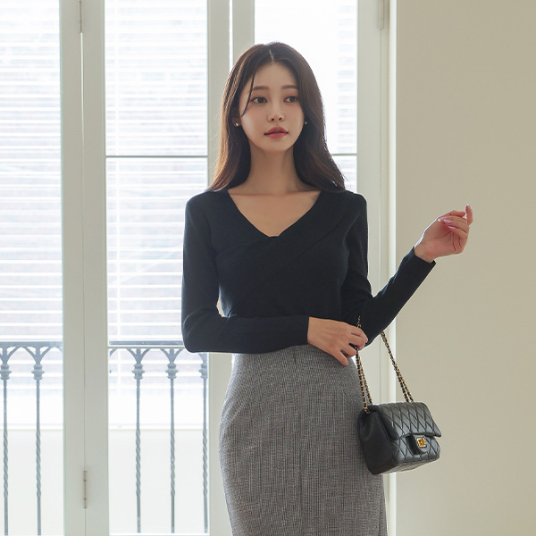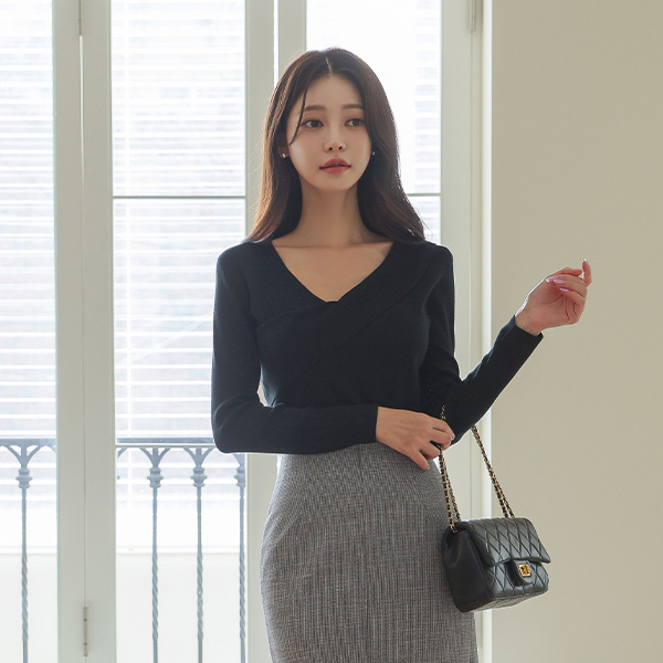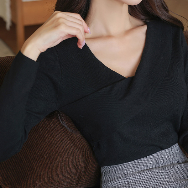 Soft Color Unbalance V-neck Knit