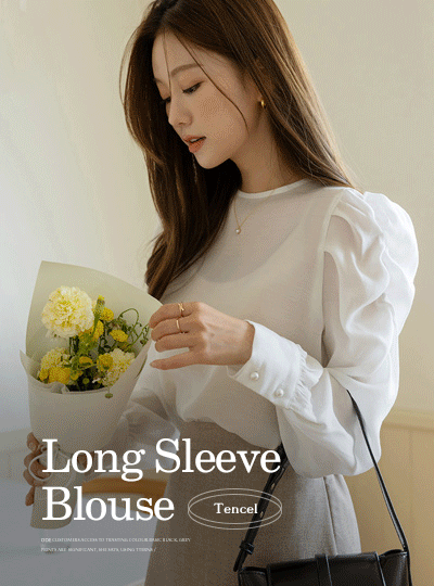 Romantic See-through Shirring Puff Tencel Long-sleeve Blouse
