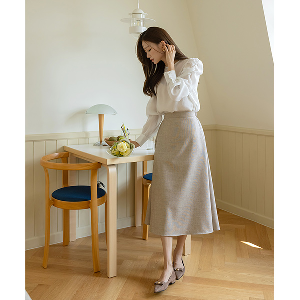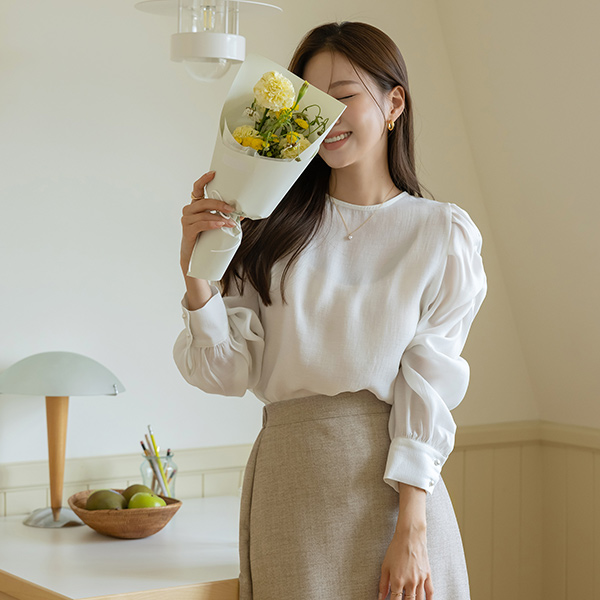 Romantic See-through Shirring Puff Tencel Long-sleeve Blouse