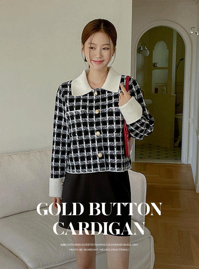 Gold Button Polo Check Knit Cardigan