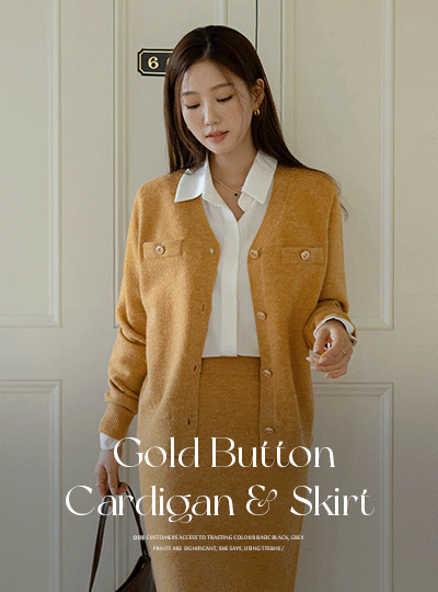 ODE Gold Button Knit Cardigan&Skirt SET