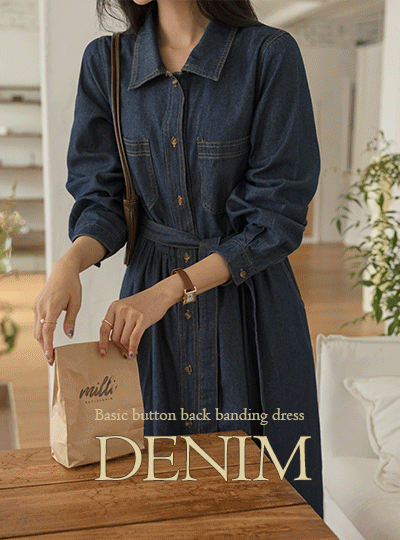 Basic Button Back Banding Denim Dress