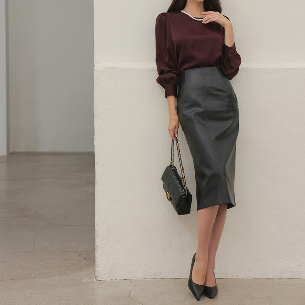 Satin Suede Pearl Necklace Blouse Ⅱ