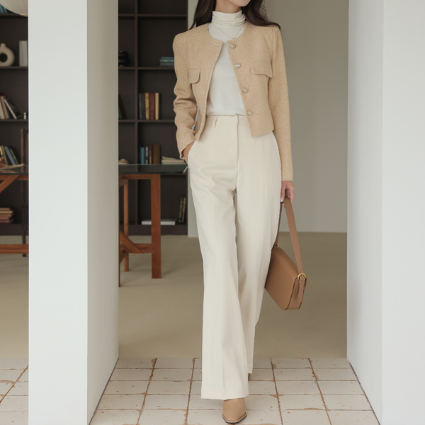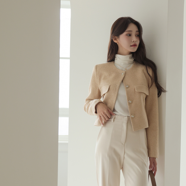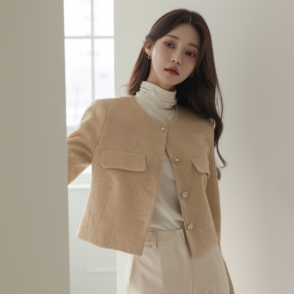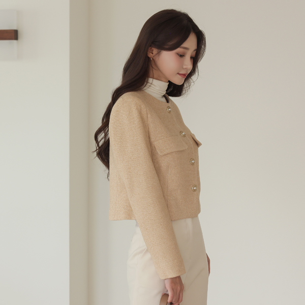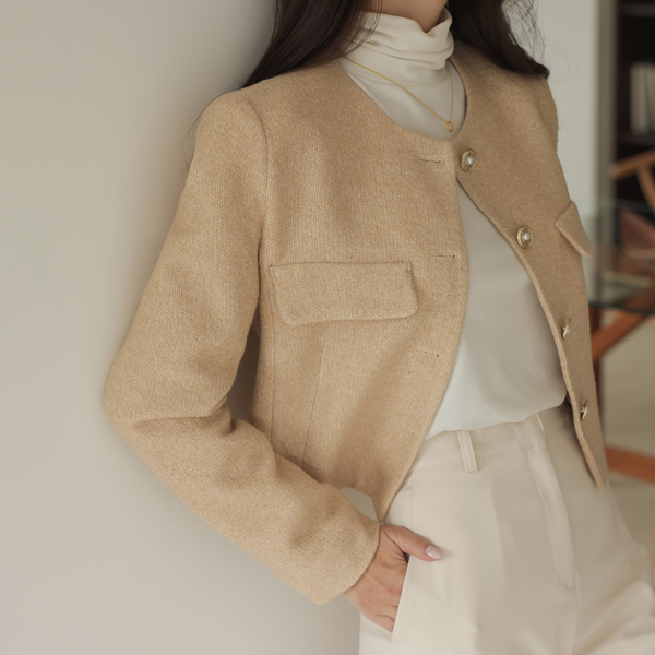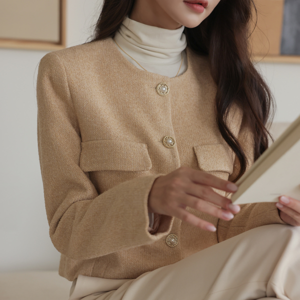 Prime Raund neck Gold Pearl Button Tweed Jacket