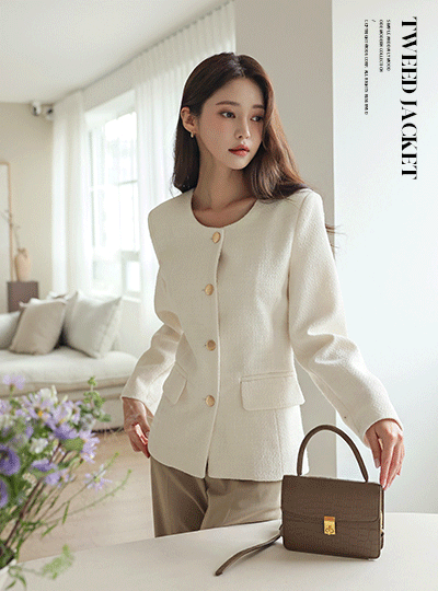 Prime Raund neck Gold Pearl Button Tweed Jacket