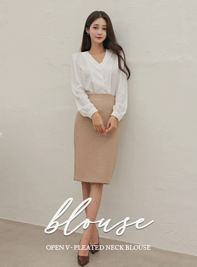 Open v 주름넥 Blouse