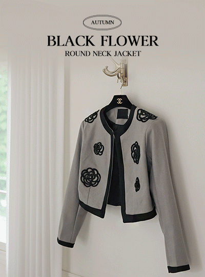 Black Beads Flower Raund neck Jacket
