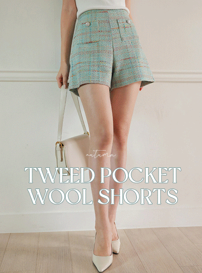 Tweed High-Waist Silver Button Pocket Wool Shorts