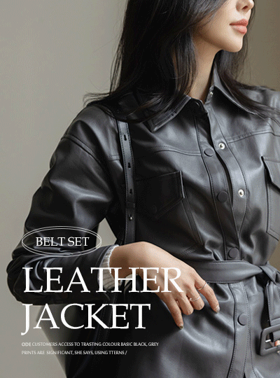 Eco Leather loose fit Shirt Jacket (BeltSET)