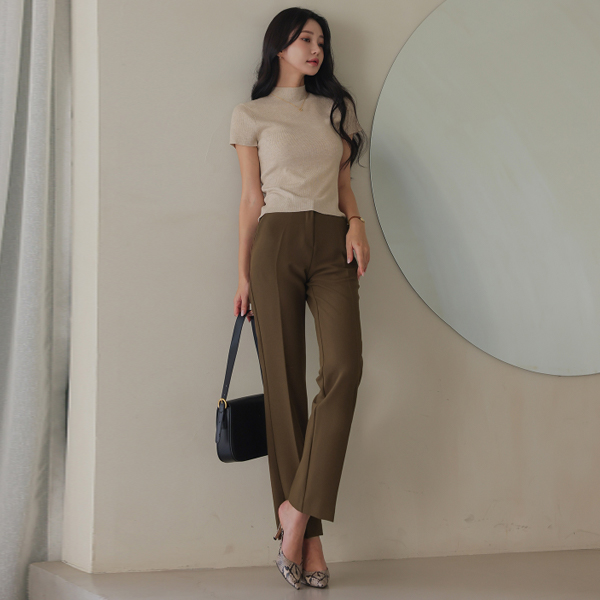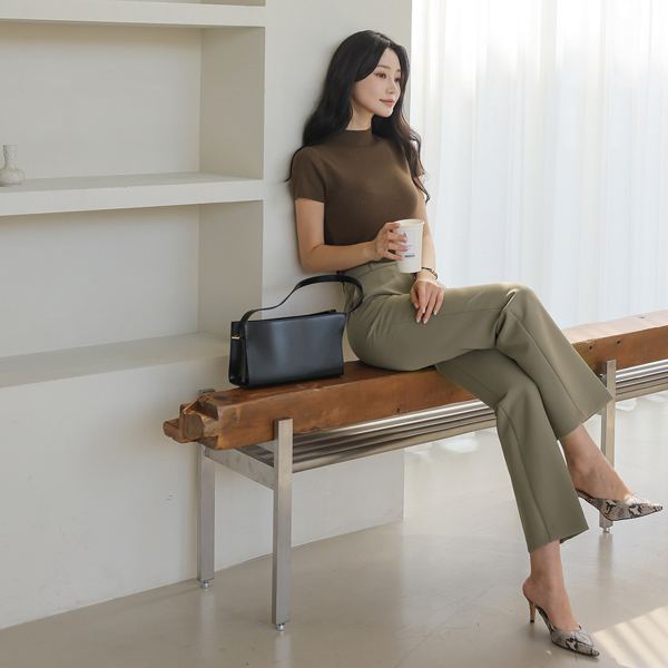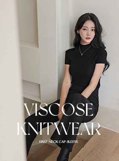 Autumn Color Biscos Half-Neck Cap-Sleeves Corduroy Knit