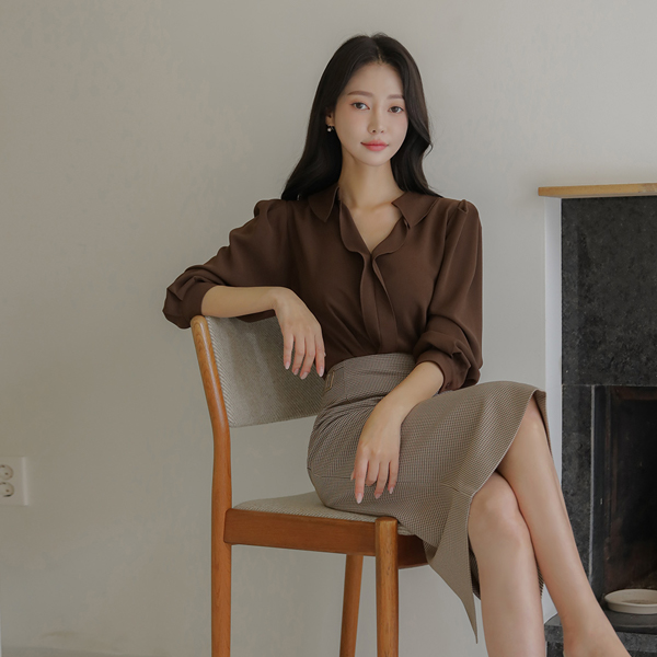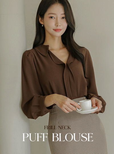 Flat Collar Frill Neck Puff Blouse
