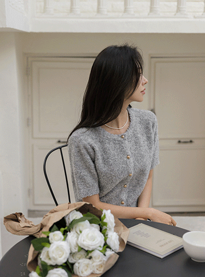 Classic Gold Button Teddy Bouclé Wool Knit Cardigan