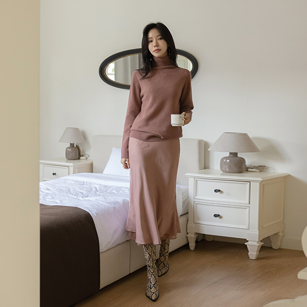 Mood Color raccoon Whole Garment Turtleneck Knit