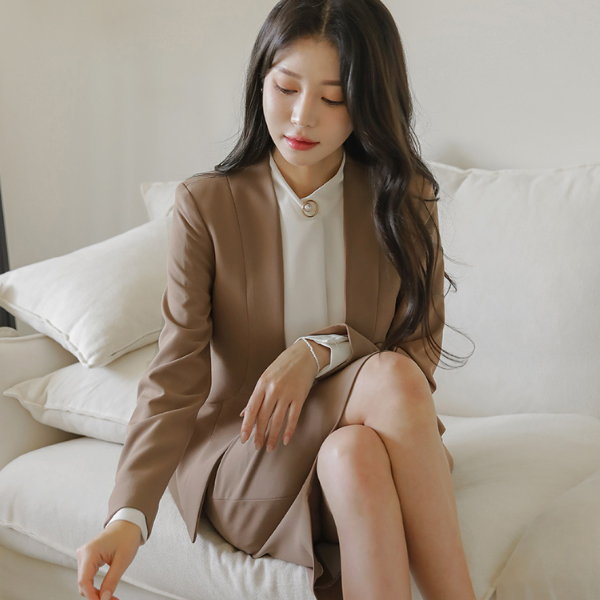 Ivy No-collar Double Peplum Slim Fit Jacket