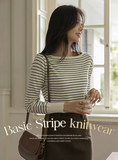 Simple Basic Boat Neck Stripe Knit