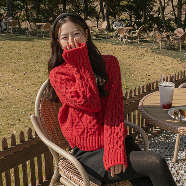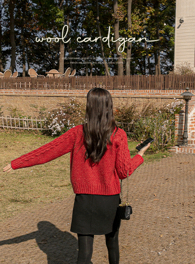 Lovely Cable Woven Button Point Wool Cardigan