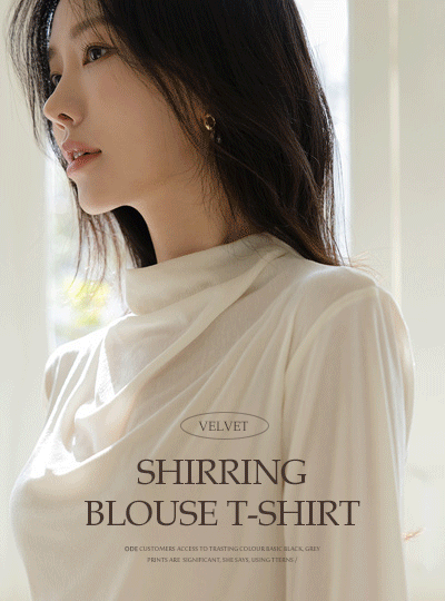 Shirring Line Half-Highneck Velvet Blouse T-shirt