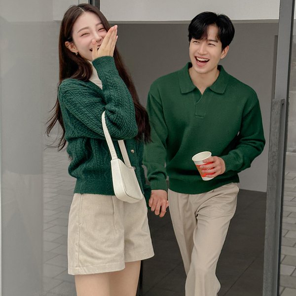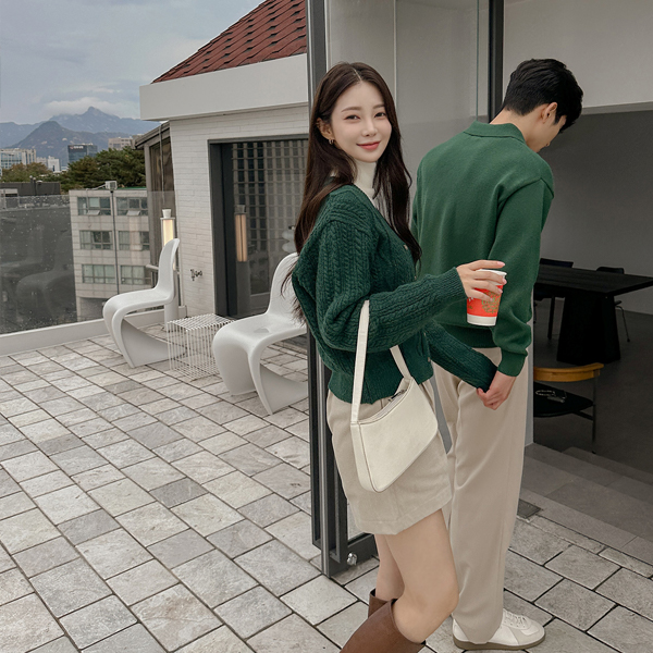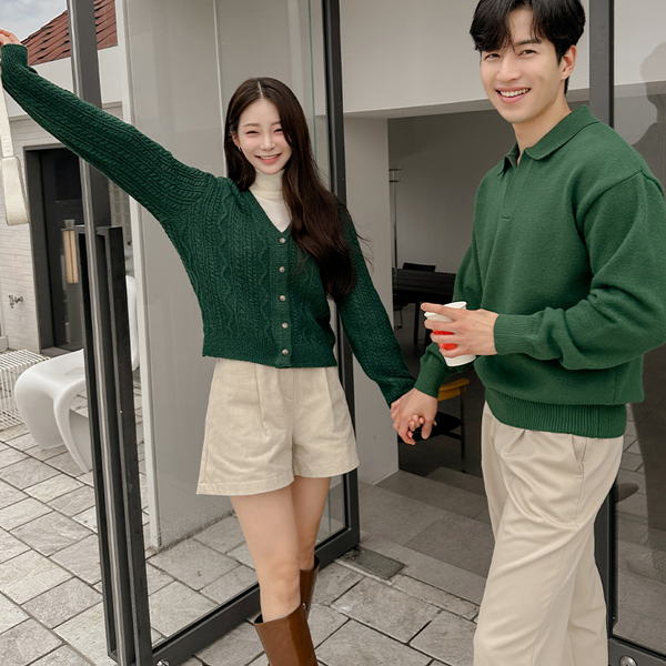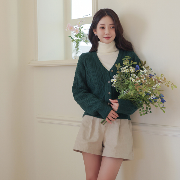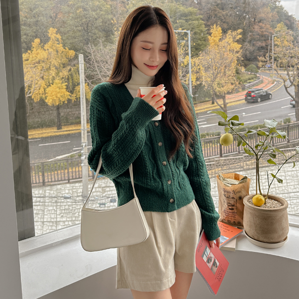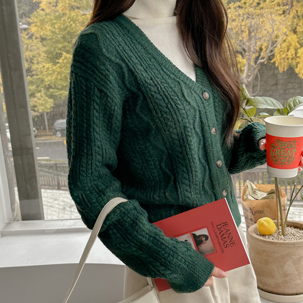 Deep-Color V-neck Cable Knit Cardigan