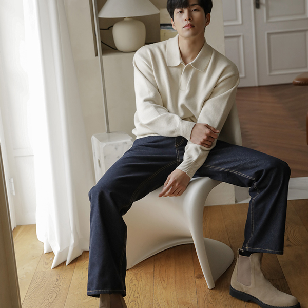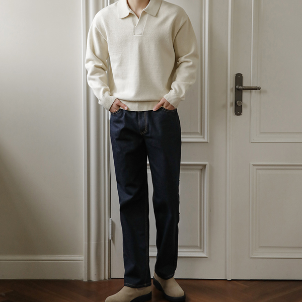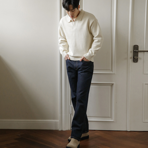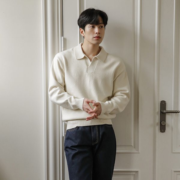 [HOMME] Thick Simple Modal Open Collar Knit