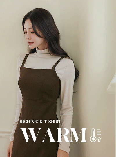 Warm Shirring Detail High-Neck Span T-shirt
