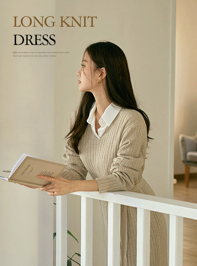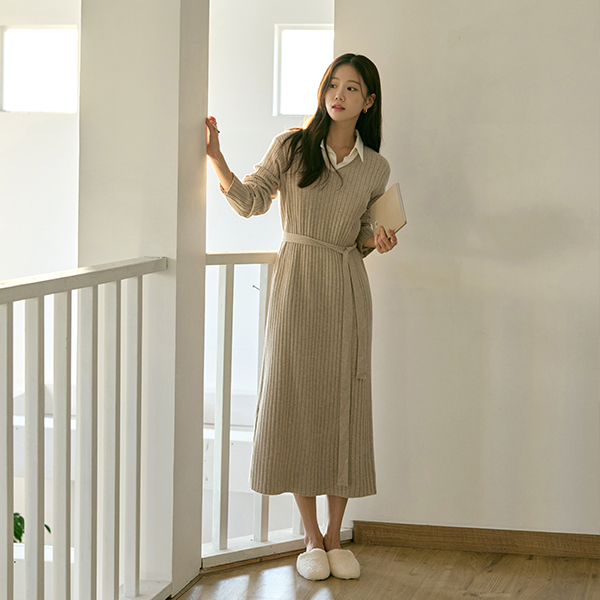 One mile V-neck Corduroy Long Knit Dress