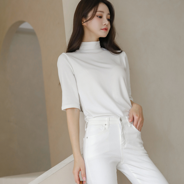 Half-Neck Cotton Modal Lining Fleece Midi T-shirt